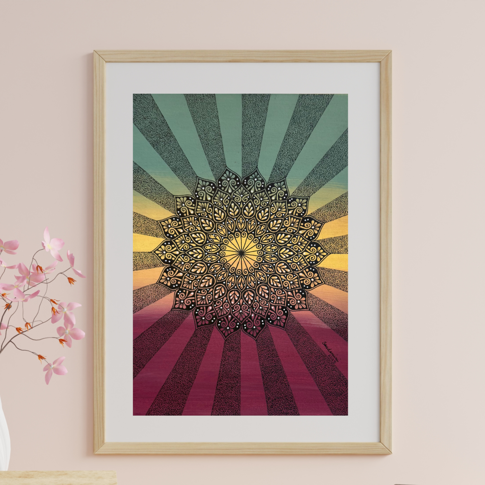 After the long night comes a quiet glow. Witness the profound beauty of this exquisitely rendered mandala, where luminous patterns emerge from shadowed depths.