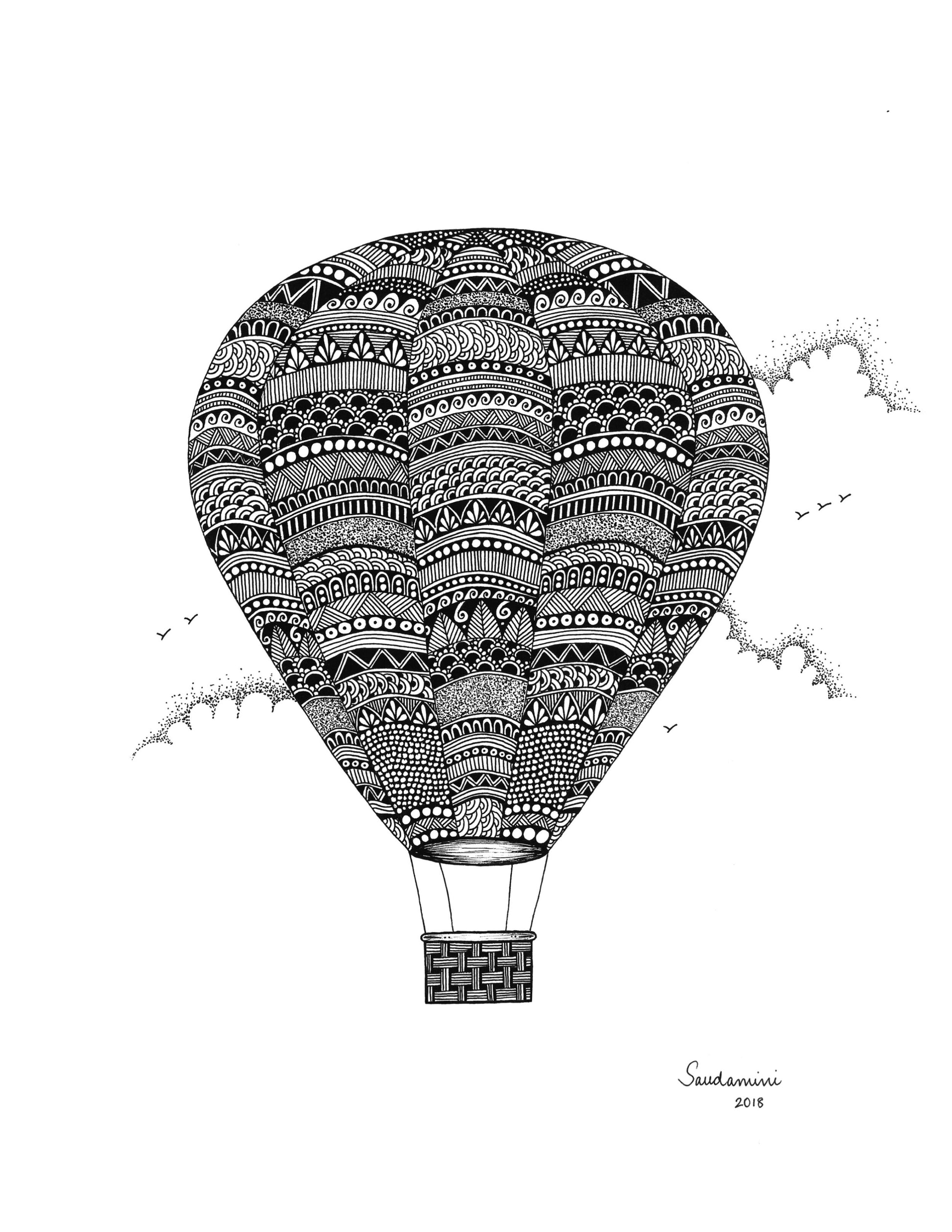 Hot Air Balloon Zentangle (Prints)