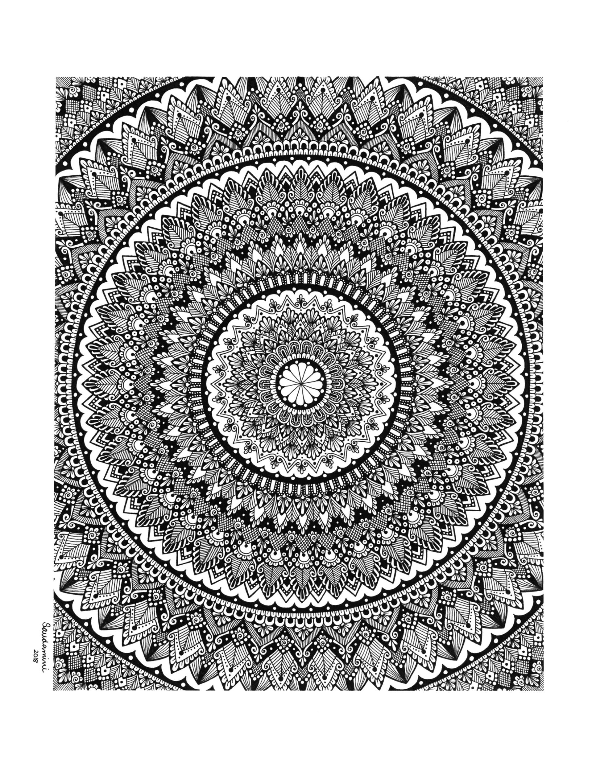 A mandala inspired by the complexities of life. "No story is a straight line. The geometry of a human life is too imperfect and complex, too distorted by the laughter of time and the bewildering intricacies of fate to admit the straight line into its system of laws."