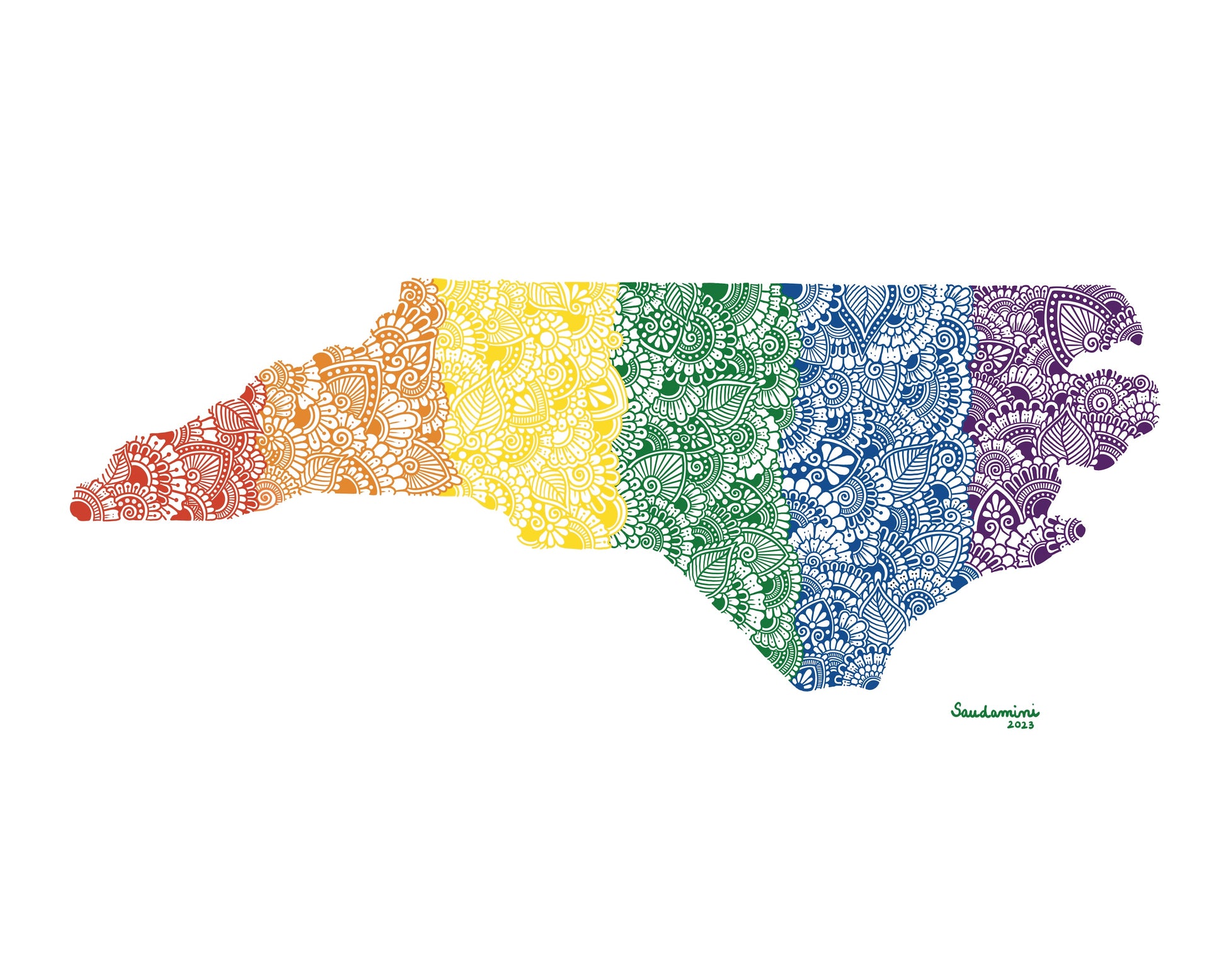Picture a stunning map of North Carolina, but with a twist that's as colorful as the diverse community it represents. Our Prideful Carolina Mandala is a true celebration of love, equality, and acceptance for all, beautifully crafted in a kaleidoscope of rainbow hues.
