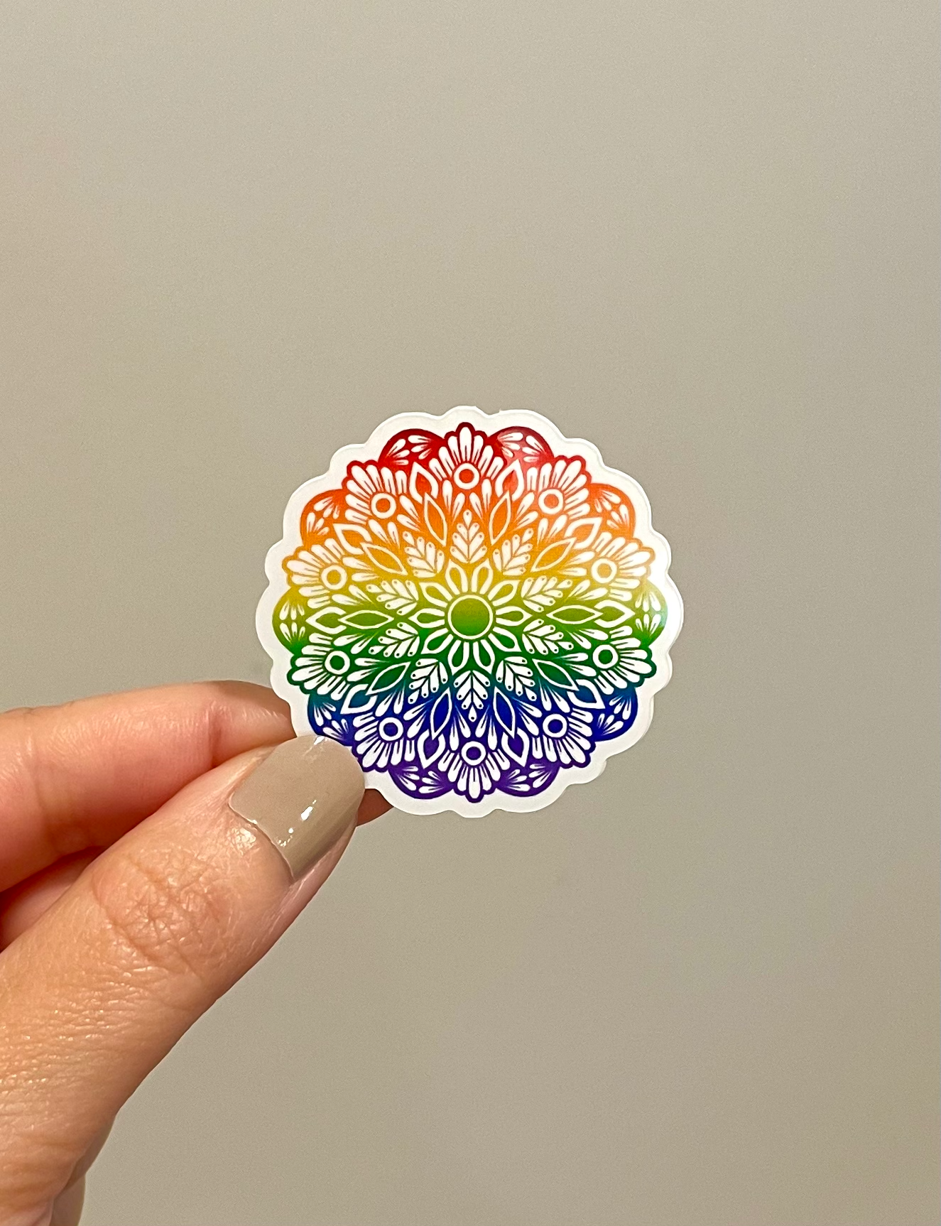 This sticker is perfect for your car, laptop or water bottle. Bring a little happiness to your day or that of someone else with this rainbow mandala.
