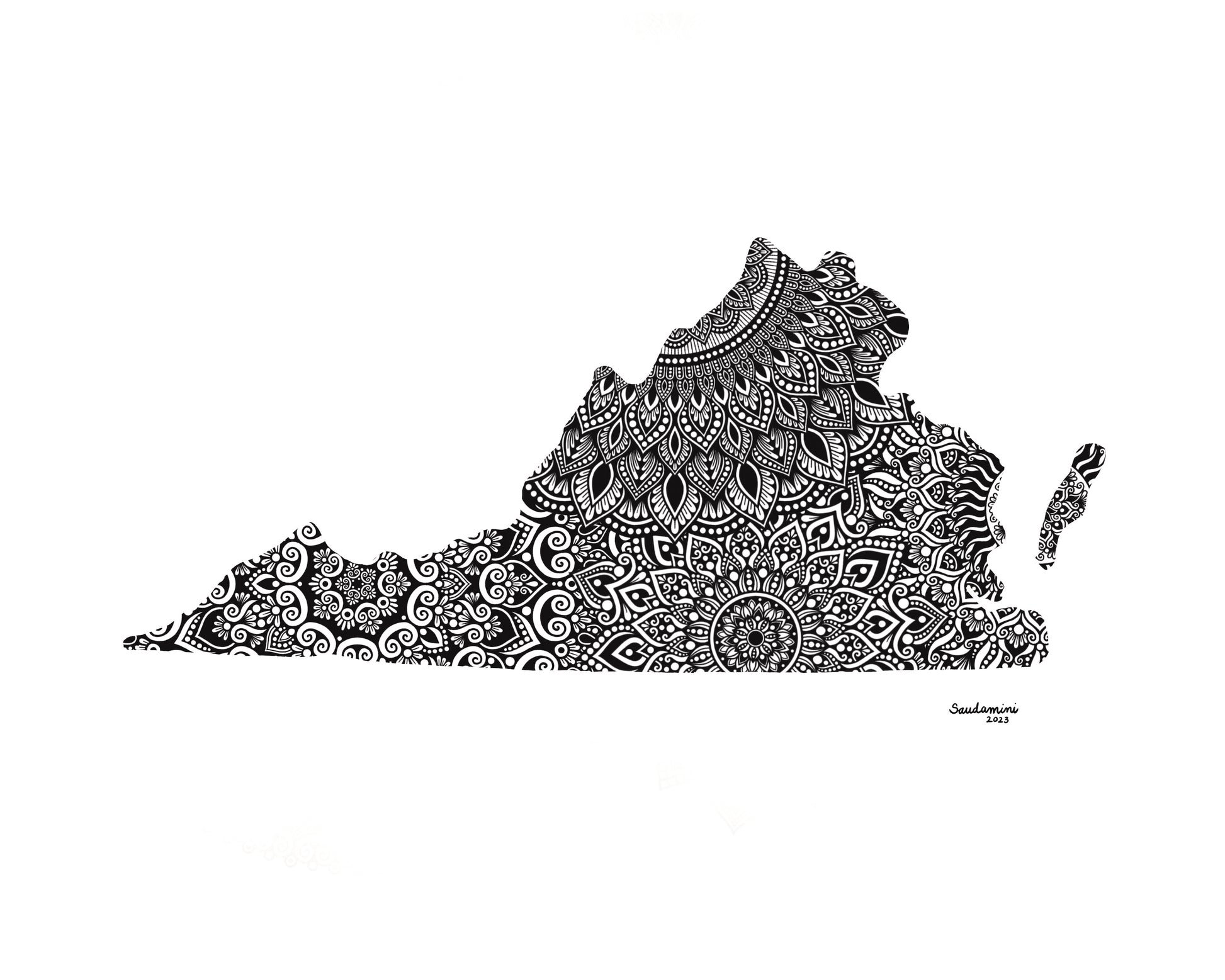 Introducing the exquisite Virginia Mandala Symphony, a masterpiece that gracefully combines the timeless allure of the great commonwealth of Virginia.
