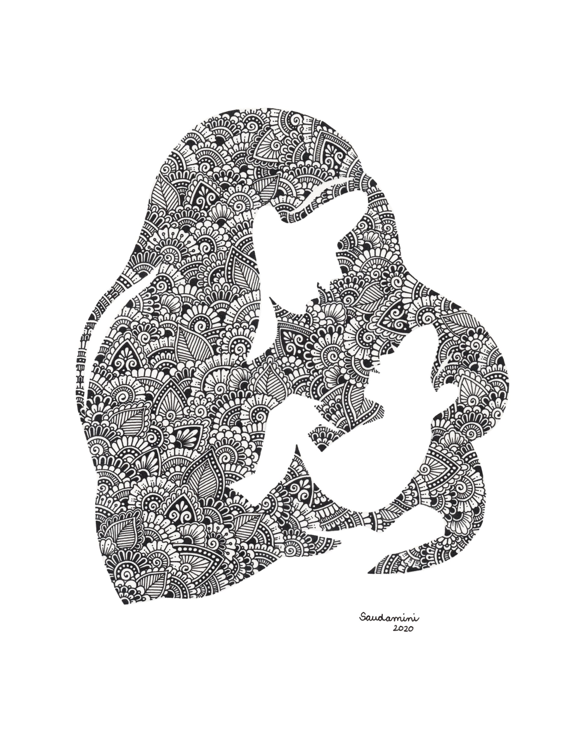 Zentangle Contours of Motherly Love